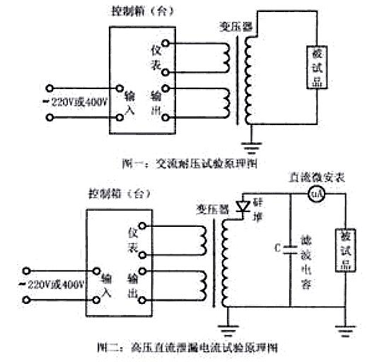 5、試驗中,如果試品短路或故障擊穿,控制箱中的過流繼電器工作,此時,將調壓器回至零位,并切斷電源后,方可將試品取出。